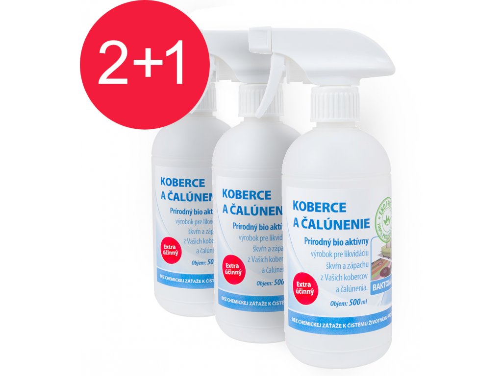 + prípravok BAKTOMA KC vďaka bakteriálnej zložke čistí nielen na povrchu, ale 100% rozloží a strávi aj celé organické znečistenie vnútri kobercov a čalúnenia
