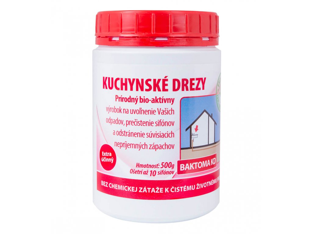 BAKTOMA KD je úplne prírodný a ekologický vysoko účinný biologický prostriedok. Je určený k uvoľneniu a spriechodneniu upchaného a zaneseného odpadového potrubia a sifónu kuchynského drezu. Pri jeho používaní dochádza k odstráneniu nepríjemného zápachu vychádzajúceho zo sifónu alebo odpadového systému. Pri pravidelnom používaní BAKTOMA KD je ošetrené celé odpadové potrubie.