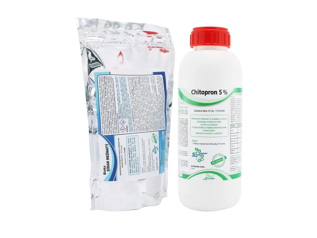 - Chitopron 5 % – prírodný biostimulant na báze chitínu, ktorý aktivuje obranné mechanizmy rastlín a zvyšuje ich odolnosť voči stresu a chorobám