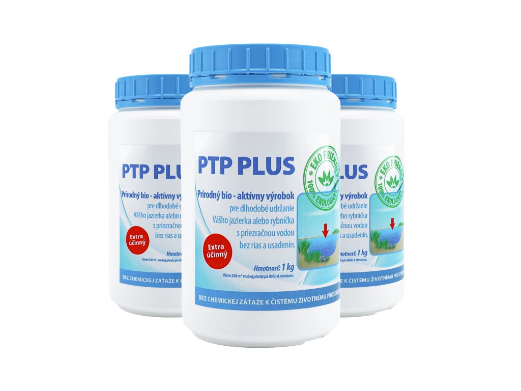 Prírodný bakteriálny prípravok pre čisté jazerá a rybníky bez siníc a bahna (pre 200 m²). Prípravok PTP PLUS je zmes bakteriálnych spór, enzýmov a živín potrebných pre činnosť mikroorganizmov. Účelom používania prostriedkov PTP PLUS je odstránenie bahna, siníc a zvýšenie obsahu kyslíku vo vodnom stĺpci vo Vašom rybníku alebo jazere. Pôsobením prípravku v jazere a rybníku je rozklad a odstránenie organických usadenín a organického bahna na dne aj vo vodnom stĺpci pomocou vysoko mobilných prírodných nemodifikovaných aeróbnych baktérií a fakultatívnych anaeróbnych baktérií s pozitívnou chemotaxou (dokážu rozpoznať typ chemického odpadu a plávať k nemu). Zároveň dochádza k výraznému zníženiu fosforu a chlorofylu A, ktorý je meradlom koncentrácie rias (likviduje látky podporujúce rast rias a tvorbu siníc), fosfátov a kalu vo vodnom stĺpci. Odstránenie fosfátov má za následok odstránenie siníc. Dochádza ku zvýšeniu obsahu kyslíku. Pri pravidelnom používaní prípravku PTP PLUS dochádza k reprodukcií baktérií, čo má za následok nepretržité čistenie jazera a rybníka. Dochádza k odstráneniu organického bahna a nie je potrebné drahé bágrovanie a odvoz bahna z dna rybníka.